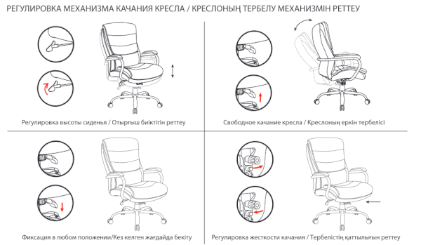 Усиленный механизм качания дает возможность глубоко раскачиваться в кресле с фиксацией в любом положении. Данный механизм отличается от других своей прочностью и надежностью.