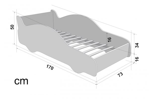 Размер кровати (ДхШхВ): 1700х730х500 мм