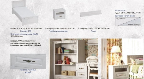 Модульная спальня детская Прованс (МБГ) - за 37 581 руб. в Дмитрове. Купите на сайте dmitrov.onlinemarketmebeli.ru или по телефону 8(800)505-30-63 уже сегодня! Уточнить наличие, комплектацию, актуальную цену можно бесплатно у менеджера ежедневно. Закажите Модульная спальня детская Прованс (МБГ) до конца акции! Доступна покупка в кредит, рассрочку. Доставим со склада или на заказ.