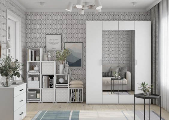 Шкаф 4-створчатый 1800 Комбинированный (2 створки с цветом фасада Венге, Белый или Сонома/2 створки Бетон или Крафт золото)