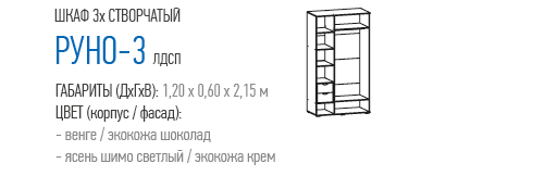 Шкаф 3х створчатый Руно-3 (Террикон) - за 27 166 руб. в Дмитрове. Купите на сайте dmitrov.onlinemarketmebeli.ru или по телефону 8(800)505-30-63 уже сегодня! Уточнить наличие, комплектацию, актуальную цену можно бесплатно у менеджера ежедневно. Закажите Шкаф 3х створчатый Руно-3 (Террикон) до конца акции! Доступна покупка в кредит, рассрочку. Доставим со склада или на заказ.