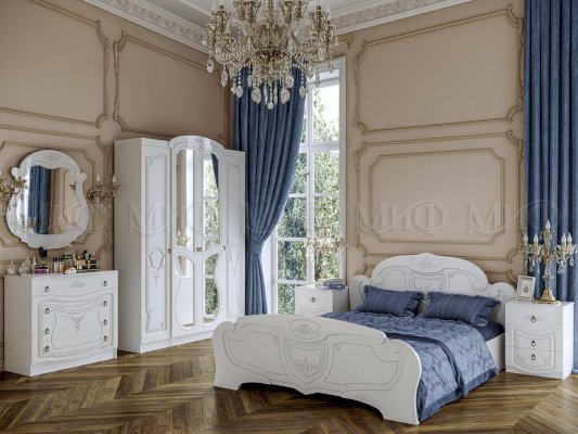 Элегантная спальня «Мария» украсит любую квартиру. Все предметы этой мебели с белыми фасадами идеально дополняют друг друга. Плавные линии и резные элементы декора придутся по вкусу ценителям уюта и комфорта.