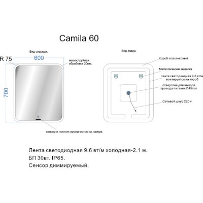 Светодиодное зеркало Camila (Veneciana) - за 15 564 руб. в Дмитрове. Купите на сайте dmitrov.onlinemarketmebeli.ru или по телефону 8(800)505-30-63 уже сегодня! Уточнить наличие, комплектацию, актуальную цену можно бесплатно у менеджера ежедневно. Закажите Светодиодное зеркало Camila (Veneciana) до конца акции! Доступна покупка в кредит, рассрочку. Доставим со склада или на заказ.