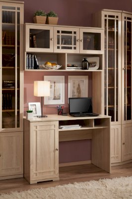 Завершающие модули библиотеки SHERLOCK 34 и 35 позволят создать гармоничную и, в то же время, изысканную атмосферу в кабинете. Классический 115 Стол письменный можно поставить между высокими шкафами библиотеки и навесить над ним 4 Шкаф навесной на любой удобной для Вас высоте. Шкафы необходимо крепить к стене за подвесы. Благодаря своей высоте они удивительно ёмкие и вместительные.
